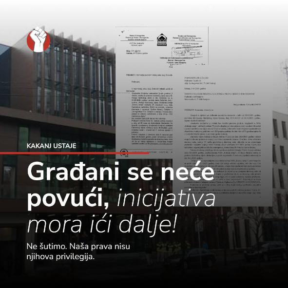 Prošlo je skoro punih 6 mjeseci od kada je neformalna grupa građana „Kakanj ustaje“ predala građansku inicijativu sa 1825 potpisa (što čini više od 5% građana upisanih u Centralni birački spisak za područje općine Kakanj) i sa osam jasnih zahtjeva na protokol Općinskog vijeća Kakanj. Kolegij Općinskog vijeća je, poštujući obavezu propisanu Statutom Općine Kakanj, da se najkasnije u roku od 60 dana od njenog podnošenja treba izjasniti o podnesenoj građanskoj inicijativi, 18.06.2025. donio odluku da se ista uvrsti na dnevni red 8. redovne sjednice Općinskog vijeća. I uvrštena je, kao 15. posljednja tačka predloženog dnevnog reda. No, na samoj sjednici, održanoj 26.06.2025. građanska inicijativa je povučena sa dnevnog reda, na prijedlog jednog od klubova u Općinskom vijeću.