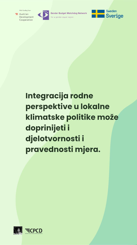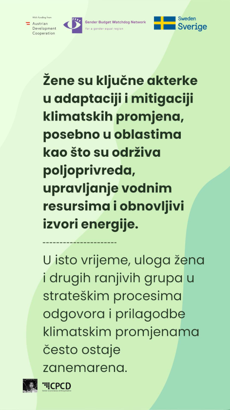 Zato rodno odgovorno budžetiranje postaje ključno. Ono omogućava da se javni novac planira i troši tako da uzima u obzir različite potrebe žena i muškaraca, te da klimatske mjere budu efikasne, pravedne i održive.