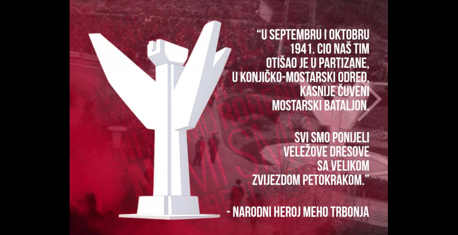Zastrašujući kontinuitet obračuna sa antifašističkom tradicijom Mostara se nastavlja. Grad u kome se antifašistima zabranjuje komemorativna šetnja povodom godišnjice obilježavanja njegovog oslobođenja od fašizma u Drugom svjetskom ratu, grad u kome se devastira partizansko spomen-groblje, remek djelo arhitekte Bogdana Bogdanovića a onda štiti počinioce (koji će javnosti postati poznati, valjda, tek kad im jednog dana odluče za preko 700 uništenih spomen ploča dodijeliti priznanje), postao je i grad u kome se prvo iživljavaju na spomeniku u Drugom svjetskom ratu, u borbi protiv fašizma, poginulim igračima Fudbalskog kluba Velež, a onda ga i sruše. A da pritom ni vlast ni za to nadležne institucije ne reaguju. Reagovao je, izražavajući duboko razočarenje, Fudbalski klub Velež, koji je, u ovim povodom objavljenom saopštenju, poručio: “Ovaj čin nas neće pokolebati. Naprotiv, dodatno nas obavezuje da još snažnije stojimo uz vrijednosti koje Velež čine više od fudbalskog kluba, simbolom otpora, ponosa i neprekidne borbe za pravdu i istinu.”. U nastavku ovo saopštenje prenosimo u cjelosti.