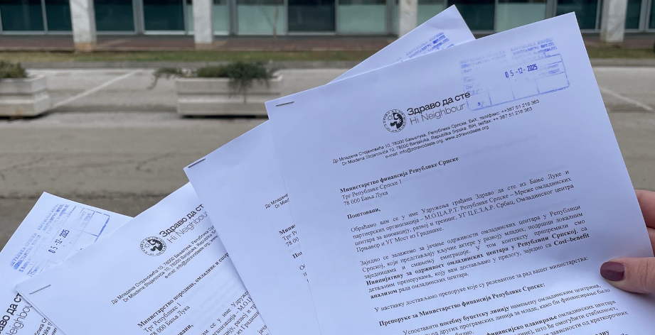 Organizacija „Zdravo da ste“ iz Banjaluke, zajedno sa partnerima iz M.O.C.A.R.T. Republike Srpske – Mreže omladinskih centara za animaciju, razvoj i trening, te udruženjima C.E.Z.A.R. (Srbac), Omladinskim centrom Prnjavor i Udruženjem Most (Gradiška), podnijela je inicijativu za uspostavljanje sistemske, stabilne i dugoročne podrške omladinskim centrima u Republici Srpskoj. Cilj inicijative je osigurati predvidivo finansiranje i institucionalne mehanizme koji omogućavaju kontinuitet rada i razvoj usluga koje centri pružaju lokalnim zajednicama.