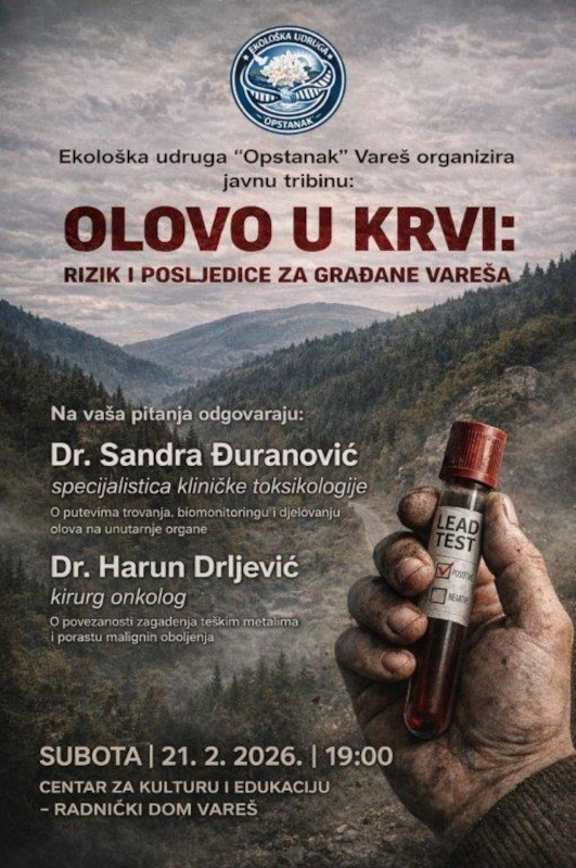 Na temu jedne od najozbiljnijih zdravstvenih kriza u Bosni i Hercegovini, javnu tribinu narednog vikenda organizuje Ekološka udruga “Opstanak”, koja je 10.02.2026. održala osnivačku skupštinu, sa koje su iz Vareša, već tada, vlastima uputili jasne zahtjeve.