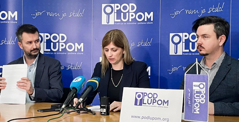 Iz Koalicije „Pod lupom“ su pozvali građane i građanke da prijave sve izborne nepravilnosti koje uoče putem besplatnog telefona 080 05 05 05 ili društvenih mreža Koalicije „Pod lupom“.