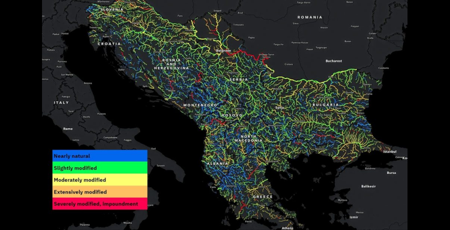 Od analiziranih većih rijeka, samo 23% i dalje je gotovo prirodno, dok 43% pokazuje blage izmjene. Umjereno do snažno izmijenjene rijeke čine 27%, a teško izmijenjene dionice – prvenstveno akumulacije – 7% mreže. Najznačajnije promjene zabilježene su u slivovima Drine, Neretve, Vardara/Axiosa, Devolla i Drima. Iako je ovaj pad alarmantan, preostali udio gotovo prirodnih i blago izmijenjenih rijeka i dalje je znatno veći nego u ostatku Evrope, što potvrđuje jedinstveni status Balkana kao posljednjeg velikog evropskog uporišta netaknutih rijeka.