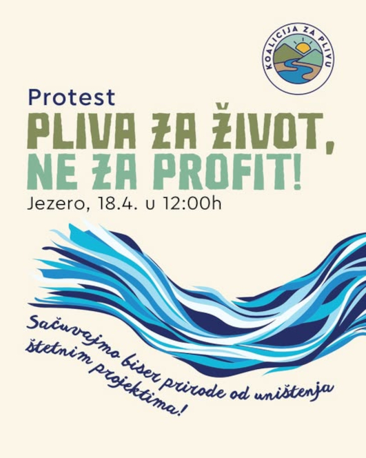 Koalicija za Plivu pozvala je “sve građane, ljubitelje rijeka, sve koji ne žele dati pitku vodu investitorima, sve kojima je rijeka Pliva u srcu, u uspomenama, u sjećanjima, sve kojima žubor čistih virova znači više od profita privatnih investitora, sve koji žele sačuvati javna dobra i odbraniti jedno od osnovnih ljudskih prava, a to je pravo na vodu” – na protest.