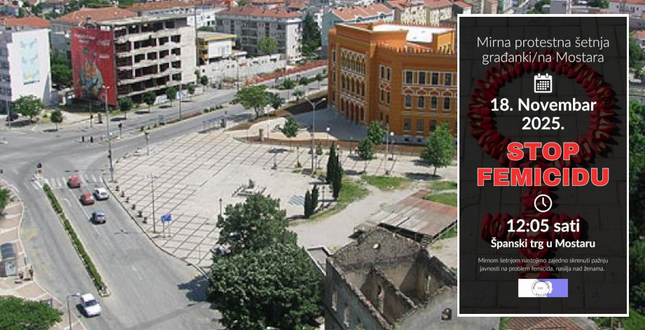 Zbog posljednjeg u stravičnom nizu femicida u BiH – ubistva Aldine Jahić u Mostaru – Inicijativa građanki/na Mostara organizuje mirnu protestnu šetnju, u utorak, 18.11.2025., u 12.05 sati.