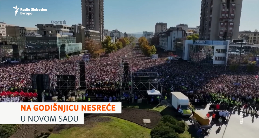 Desetine hiljada ljudi iz cele Srbije okupile su se 1. novembra u Novom Sadu kako bi odale počast žrtvama pada nadsrešnice Železničke stanice u tom gradu pre godinu dana. Pogibija 16 ljudi pokrenula je talas antivladinih protesta predvođenih studentima sa kojih se traži odgovornost vlasti za nesreću i raspisivanje vanrednih izbora. Godinu dana kasnije, niko nije odgovarao. Vlast je godišnjicu obeležila pomenom u crkvi u Beogradu, a predsednik Srbije je demonstrantima ponudio dijalog, što su oni odbili, navodeći da je poziv neiskren i zakasneo.